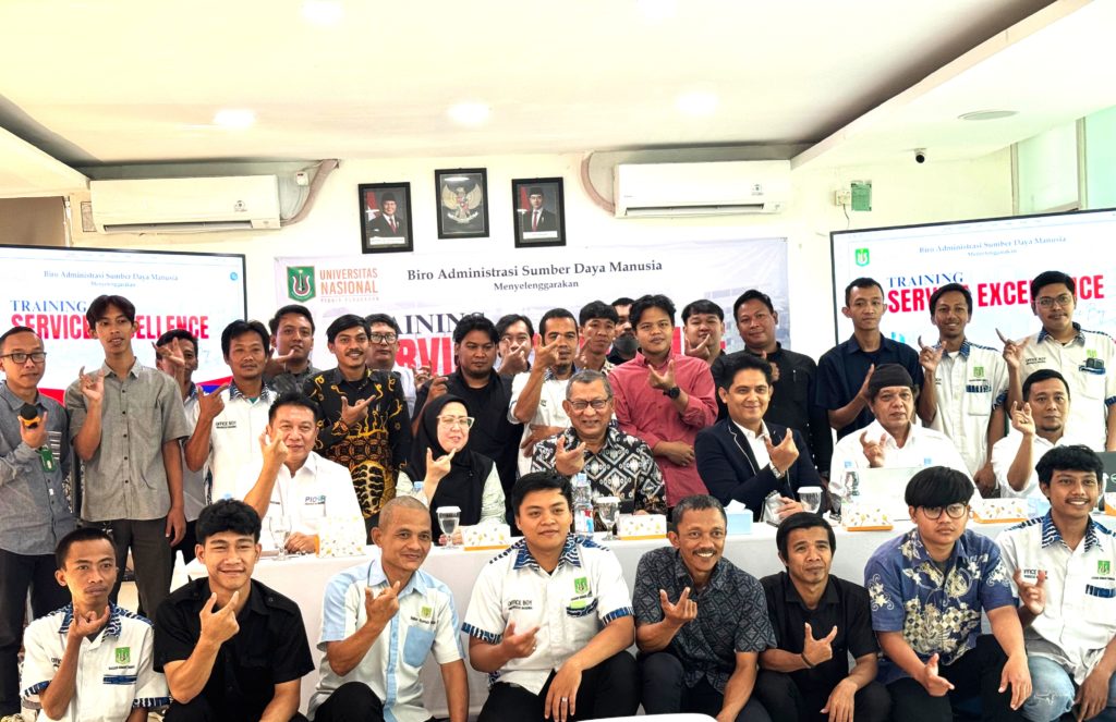 JAKARTA, 4 September 2025 – Biro Administrasi Umum (BAU) Universitas Nasional (UNAS) bekerja sama dengan Biro Sumber Daya Manusia (BSDM) menyelenggarakan Training Service Excellent Batch 1 untuk para Office Boy (OB). Pelatihan ini diikuti oleh seluruh OB dari tiga kampus UNAS, yaitu Pejaten, Ragunan, dan Bambu Kuning.